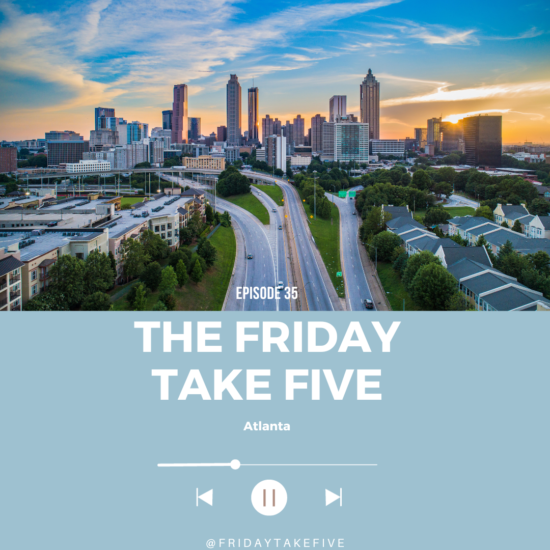 Hey Fivers! Thanks for listening to our 35th episode. If you haven’t already, give us a 5 star rating on podcasting platforms, and share this episode with a friend. Have your own stories about Atlanta? We’d love to hear it so follow us and DM us on socials @FridayTakeFive or email us at thefridaytakefive@gmail.com. Stay curious, stay adventuring, and have a great weekend!